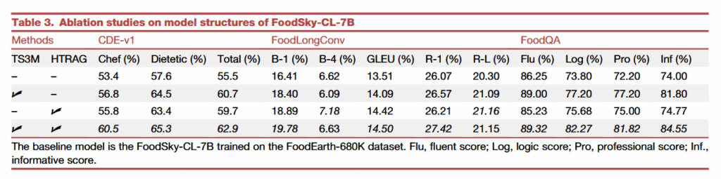 TS3M和HTRAG算法通过增强语义理解和生成的丰富性,使得FoodSky在处理复杂任务时具有显著优势。