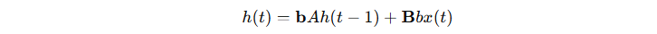 (3)潜在状态更新:潜在状态的更新结合了之前的状态 h(t−1) 和当前输入的投影 x(t),如下所示: